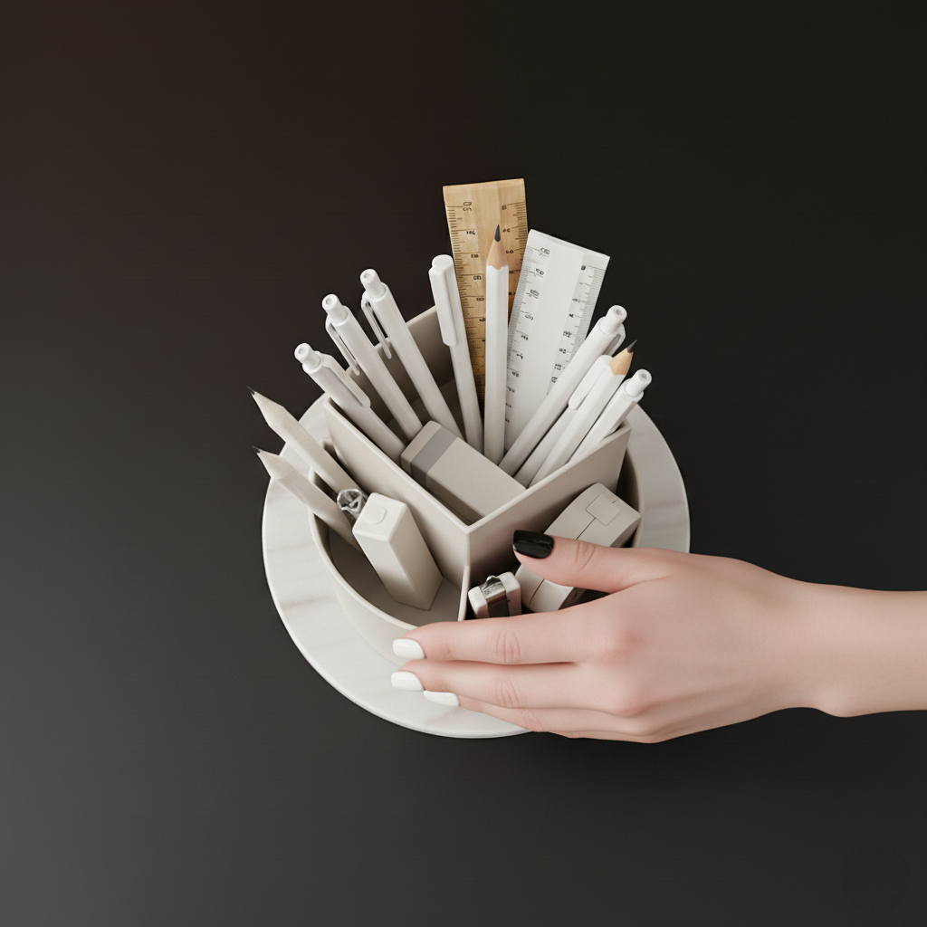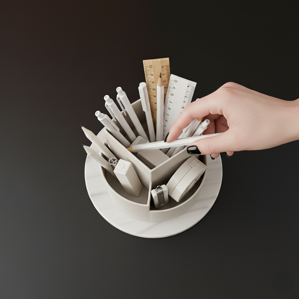 Tired of messy desks? Discover the ultimate stationery organizer! Our PP plastic rotary pen holder offers smart storage, easy access, and a chic minimalist design. Shop now for your perfect study or office solution!