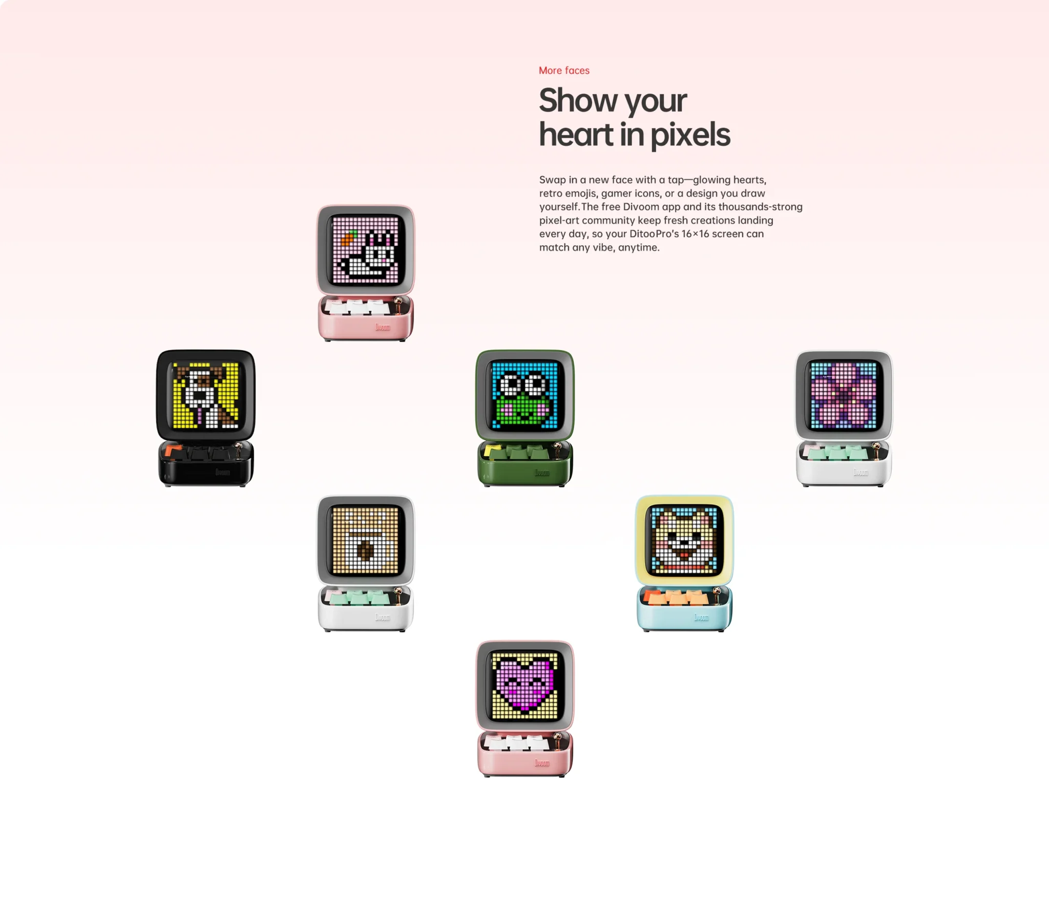 - Fun gadget to kill boredom: Create pixel art with your fingertips or explore 1,000+ designs in the free Divoom community.