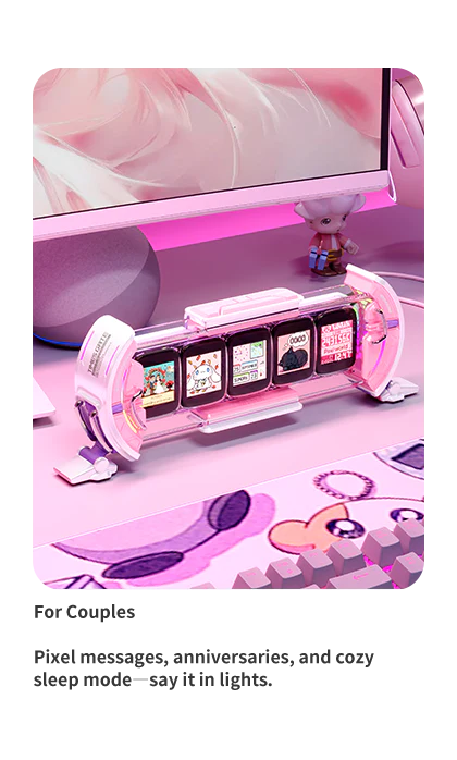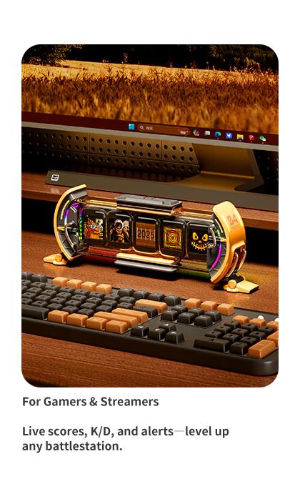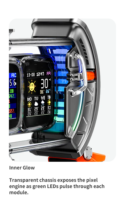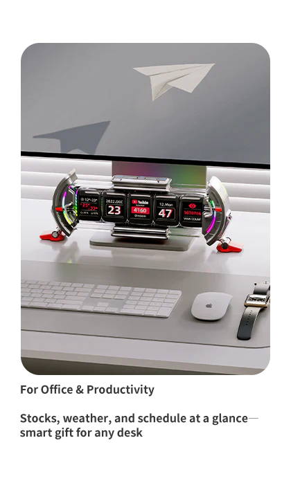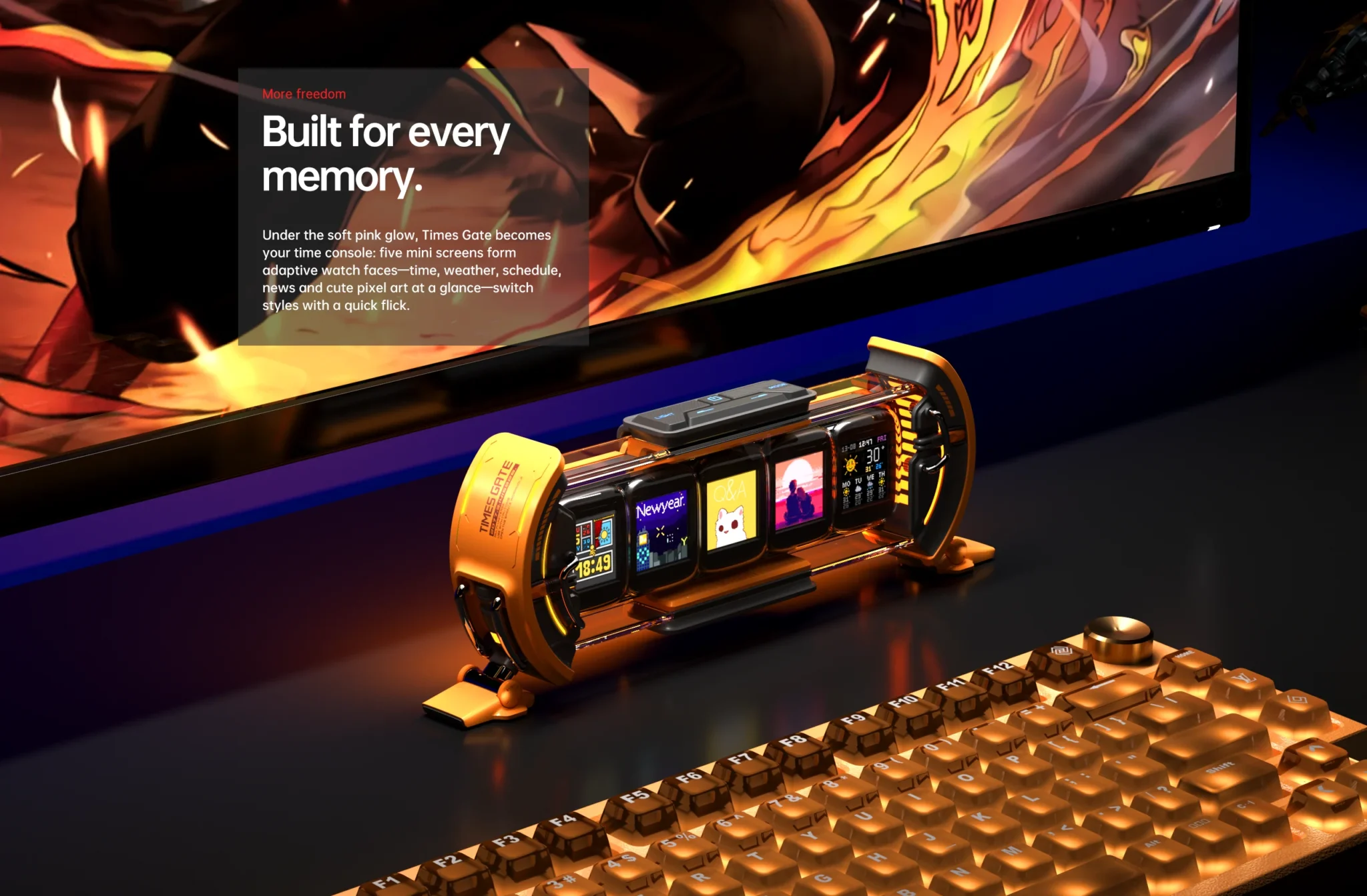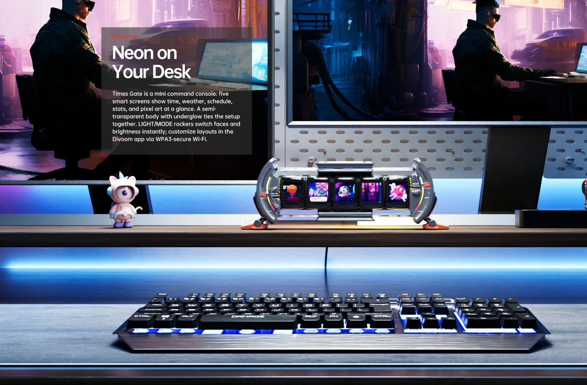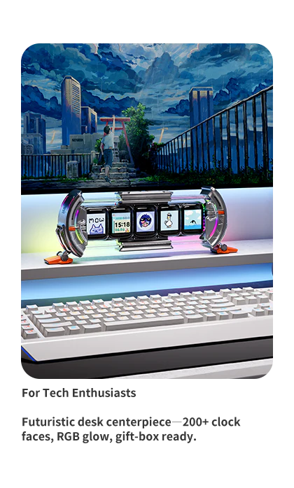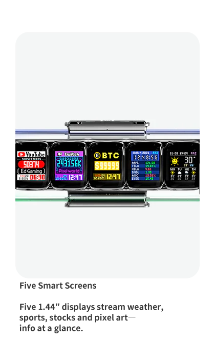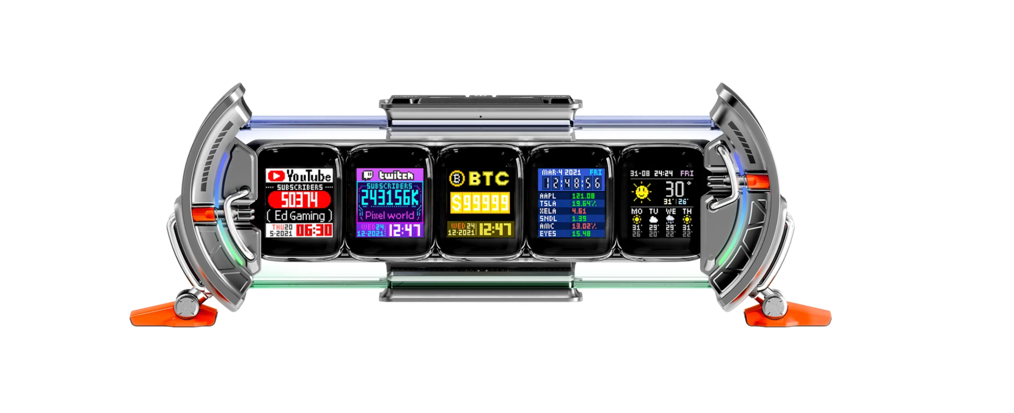 - Cyberpunk-inspired digital clock with 5 full-color LCDs