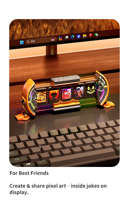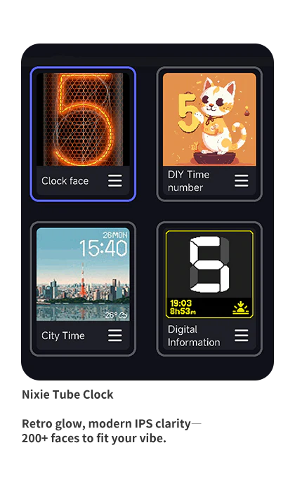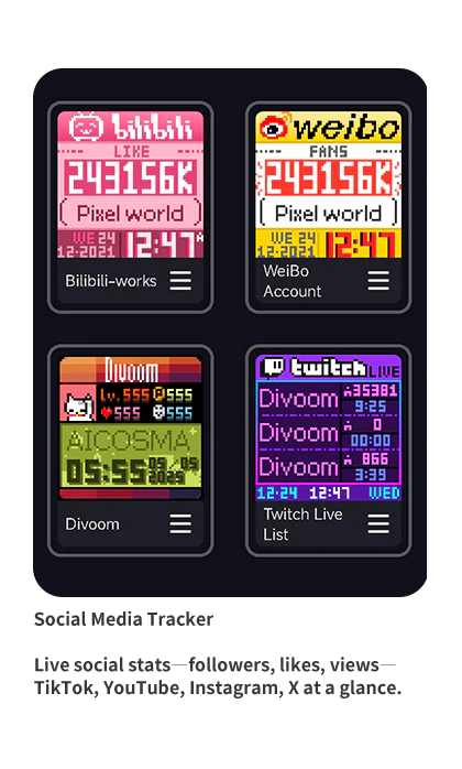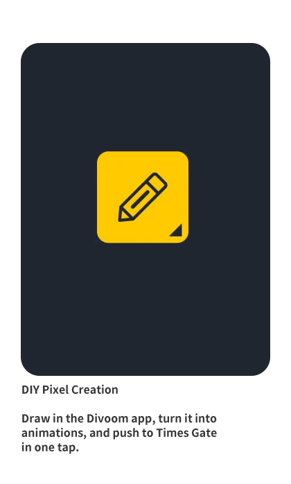 - Design screens and dials in the Divoom app—world clock, live weather, holiday calendars, much more.