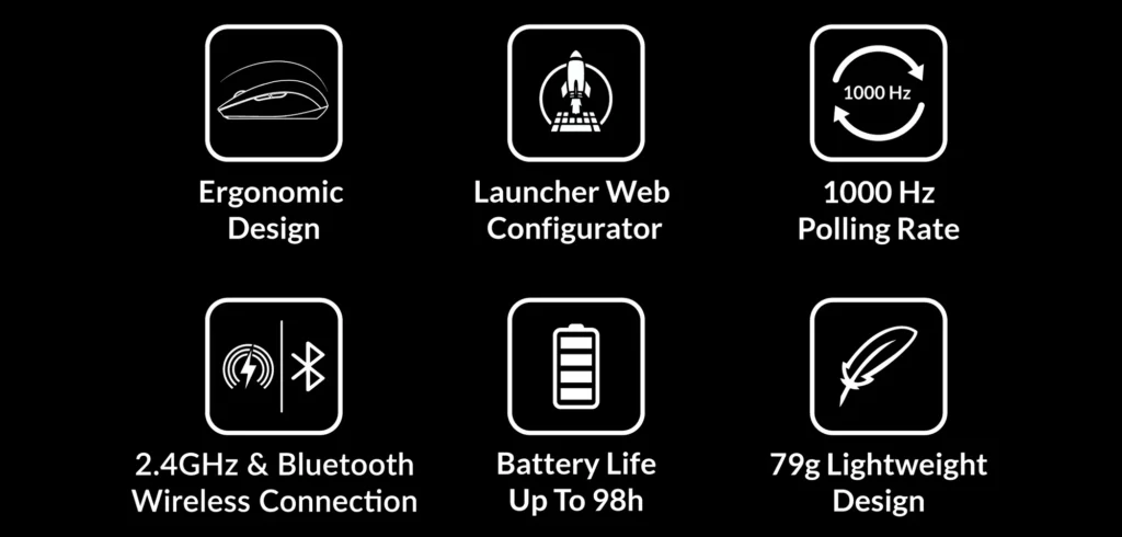 Keychron BM25 packs all the essential features into a lightweight body at only 79g. It supports wireless 2.4 GHz and Bluetooth 5.2 connections, ideal for any daily work scenario, and offers energy-efficient performance to maximize productivity and enjoyment!