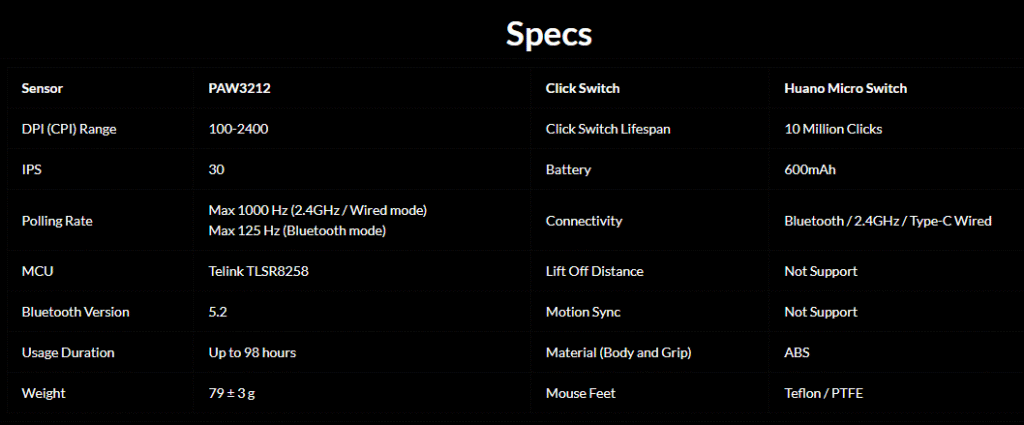 Keychron BM25 Wireless Mouse has the reliable PAW3212 sensor. It supports 2.4 GHz, Bluetooth, and a USB wired connection.