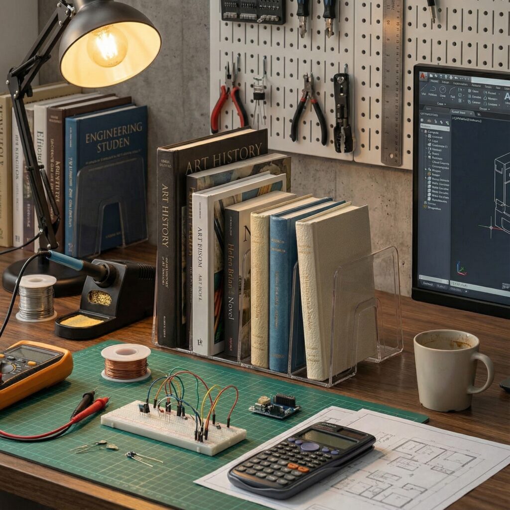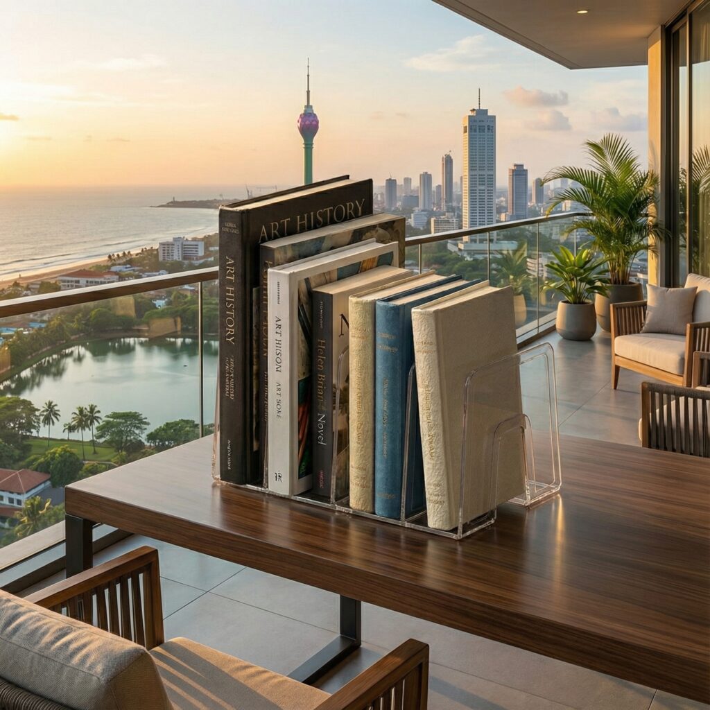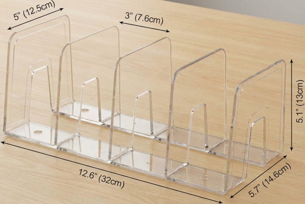 Transform your chaotic desktop into a floating library with the Prism Shaped Clear Book Stand, featuring four crystal-clear compartments that organize heavy books without adding visual weight to your workspace.