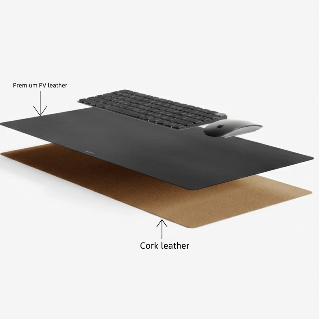The Simplist PV Leather Desk Pad is more than just a slab of leather; it is laminated in-house to a natural cork backing for the ultimate grip. We die-cut the pad with modern rounded corners and finish it with a clean, modern look.