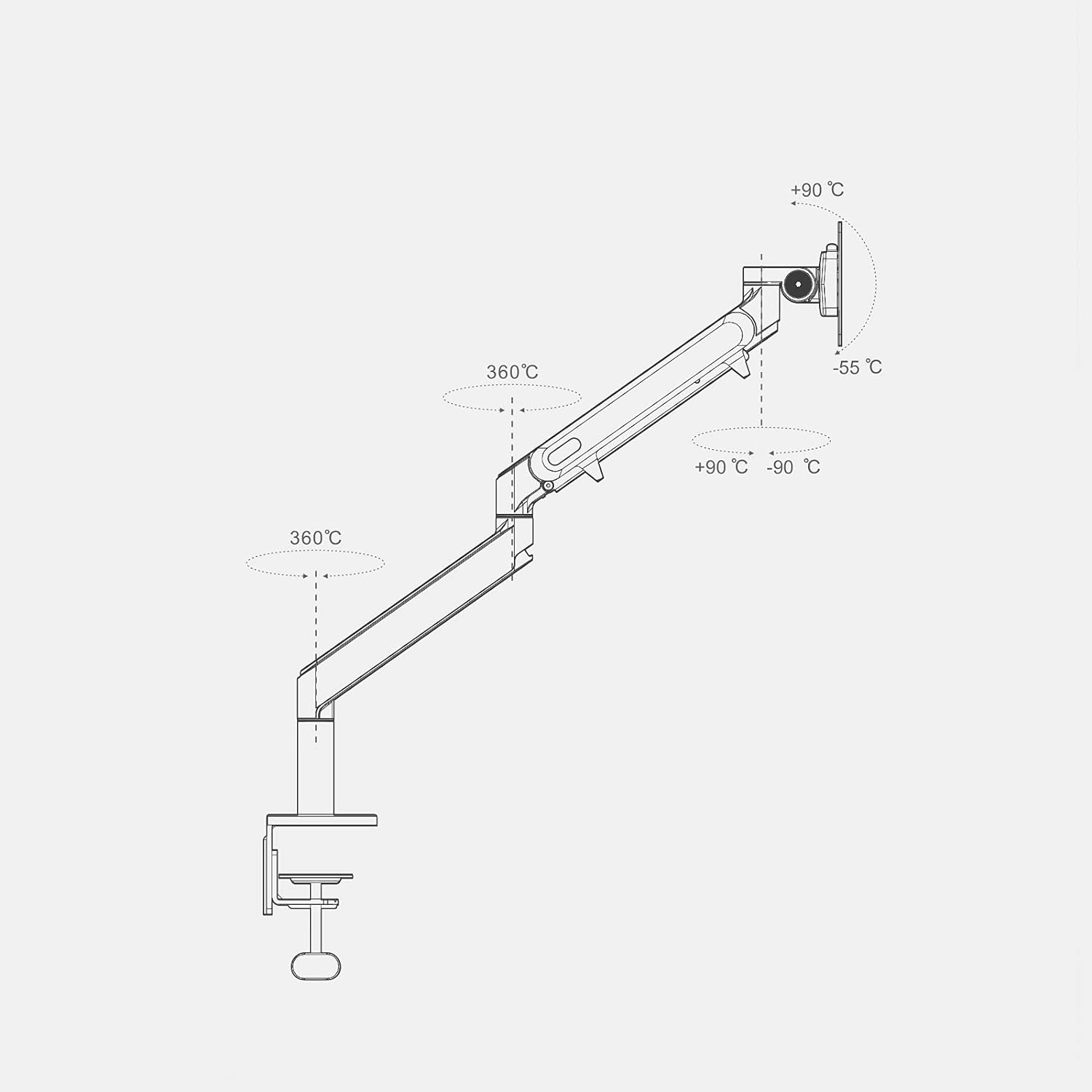 The gas spring engineering offers exceptional flexibility, enabling full adjustability with ±90° tilt, ±180° swivel, ±180° screen rotation, ±180° pan angle, and height adjustment from 6.8″ to 19.5″. The arm can extend up to 22″, providing an effortless experience when positioning your monitor.