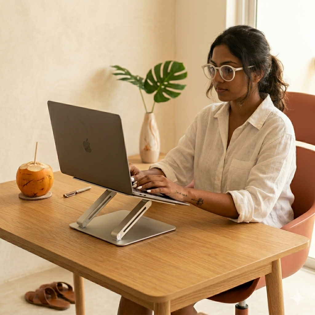 Built incredibly tough. Whether you are typing a quick email or a heavy report, your screen stays perfectly still. Plus, the open design lets air flow freely, keeping your laptop from overheating.