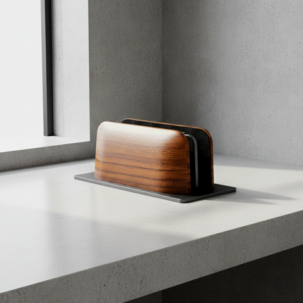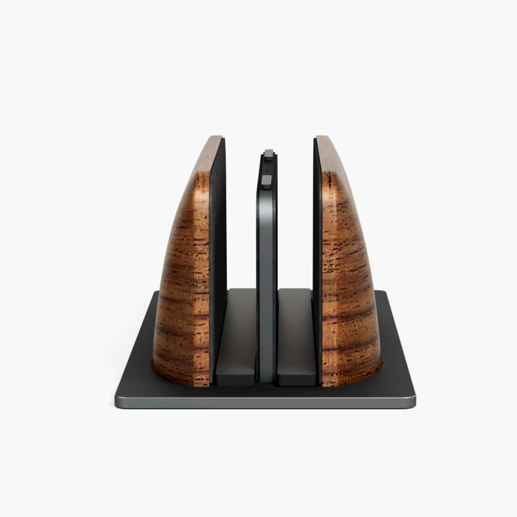 Crafted from solid walnut and precision-milled aluminum, it securely docks two laptops or laptop+tablet vertically, instantly creating a cleaner, more focused workspace.